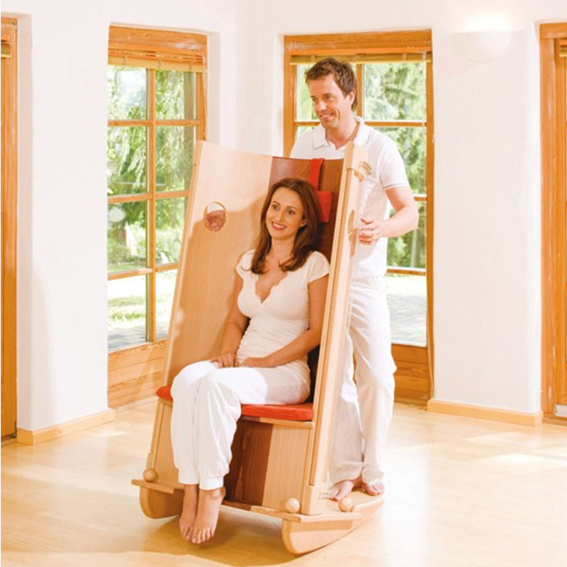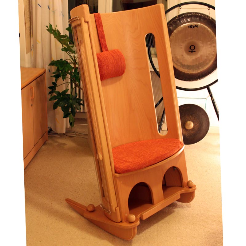 Der Klang Schaukelstuhl ist ein Monochord-Klangmöbel, dass zum einen als Schaukelstuhl oder auch schnell umgebaut als Klang-Wiege auf dem Boden genutzt werden kann. Die Rundung des Holzes gibt ein Geborgenheitsgefühl, welches durch die Klangwellen verstärkt wird. Die seitlichen Saiten können ohne große Kenntnisse einfach durch drüberstreichen aktiviert werden. Die dabei entstehenden gleichmäßigen Klangwellen beruhigen sofort, richten neu aus und bringen nachhaltige Regeneration.